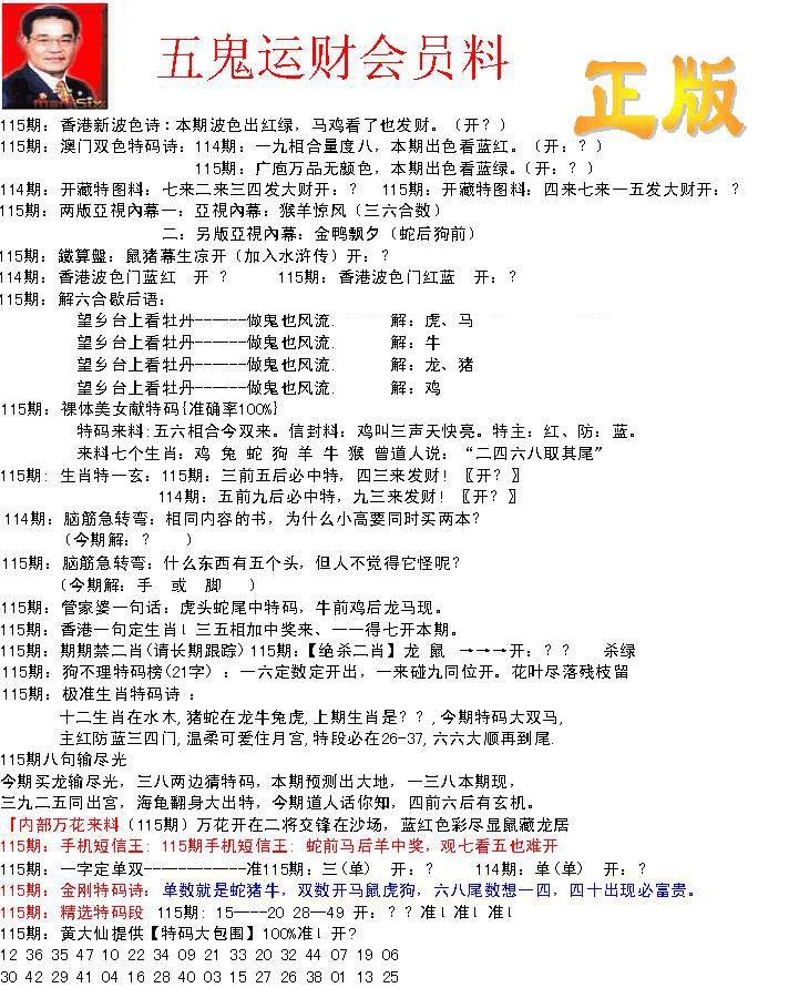 115期-正版五鬼运财会员料